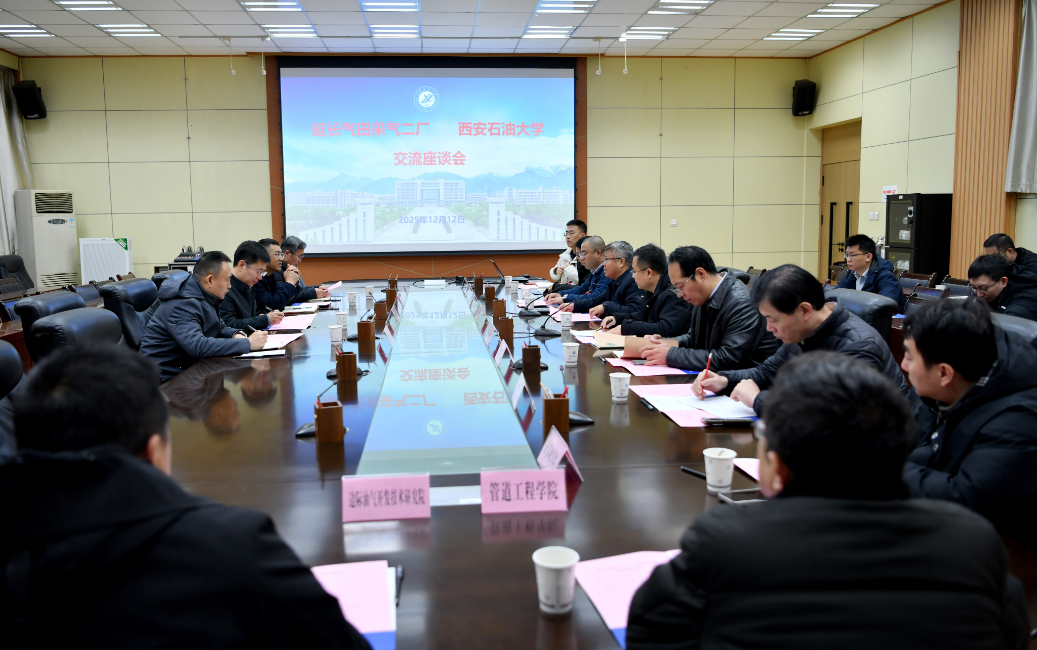 12月12日上午,延長氣田采氣二廠廠長劉保禮一行來校座談交流。座談會在雁塔校區(qū)會議中心第一會議室舉行,副校長張驍勇出席會議并致辭,石油工程學院、地球科學與工程學院、化學化工學院、機械工程學院、材料科學與工程學院、計算機學院、管道工程學院、邊際油氣開發(fā)技術研究院等單位負責人及教師代表參加座談交流,科研處副處長畢剛主持會議。
