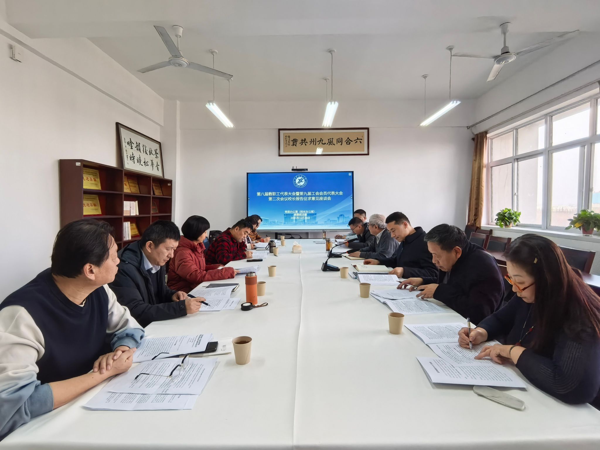 12月23日上午,黨委辦公室(校長辦公室)、黨委統(tǒng)戰(zhàn)部在鄠邑校區(qū)開物樓513會議室組織召開第八屆教職工代表大會暨第九屆工會會員代表大會第二次會議校長工作報告征求意見會,專門聽取黨外人士意見建議。各民主黨派、無黨派人士、僑聯(lián)、知聯(lián)會、留聯(lián)會負(fù)責(zé)人,黨委辦公室(校長辦公室)副主任杜永峰等同志參加會議。會議由校黨委委員、黨委統(tǒng)戰(zhàn)部部長吳復(fù)雷主持。