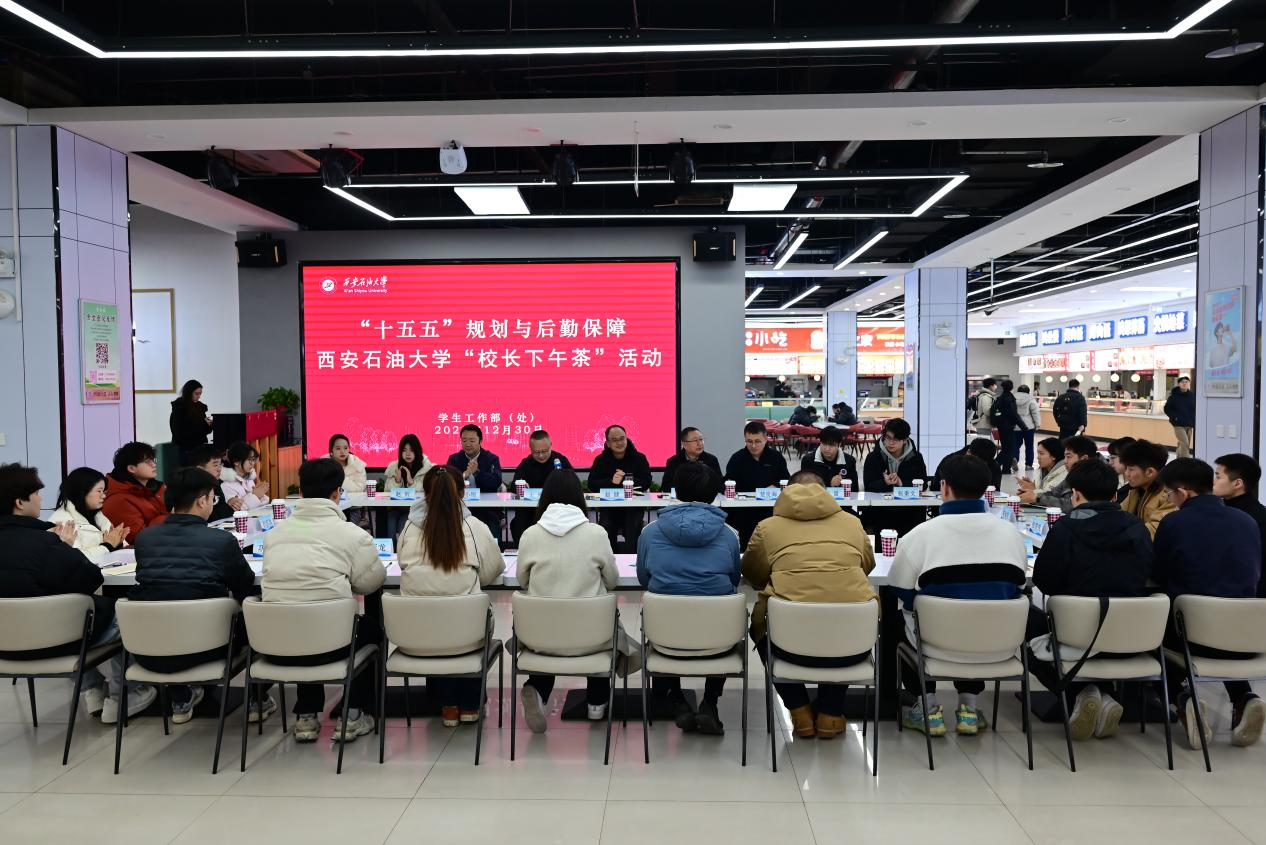 為科學謀劃學校“十五五”事業(yè)發(fā)展規(guī)劃,進一步暢通師生溝通渠道,廣泛聽取青年學生對學校未來發(fā)展和服務保障工作的意見建議,12月30日下午,我校在鄠邑校區(qū)東區(qū)食堂二樓大廳舉辦“校長下午茶”師生交流活動。校黨委委員、副校長趙健與來自各院(系)的24名本碩學生代表面對面交流,圍繞學校“十五五”發(fā)展規(guī)劃與后勤保障等議題深入探討?;ㄌ?、后勤處、學生工作部、校團委等相關職能處室負責人參加活動。活動由校團委書記王剛主持。