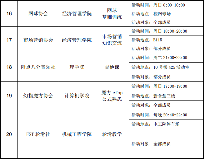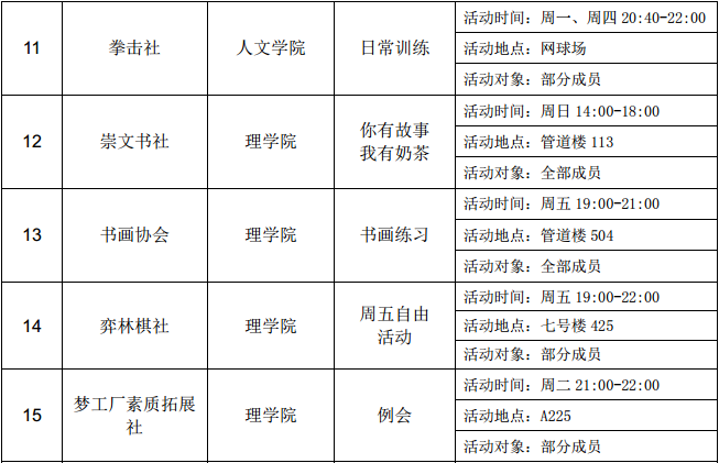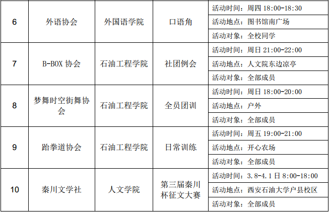 西安石油大學(xué)2016—2017學(xué)年第二學(xué)期第五周社團(tuán)活動(dòng)一覽表