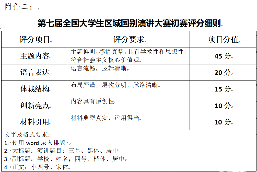 初賽為命題演講稿,參賽者根據(jù)指定命題演講題目選其一,可對(duì)題目作局部調(diào)整,如結(jié)合具體區(qū)域或國別,完成一篇演講稿(按照5分鐘演講的時(shí)間來準(zhǔn)備具體篇幅),并模擬現(xiàn)場(chǎng)演講進(jìn)行錄像,拍攝方式為橫屏拍攝。參賽者必須于2025年8月20日前將演講稿和視頻發(fā)送到郵箱306639848@qq.com。