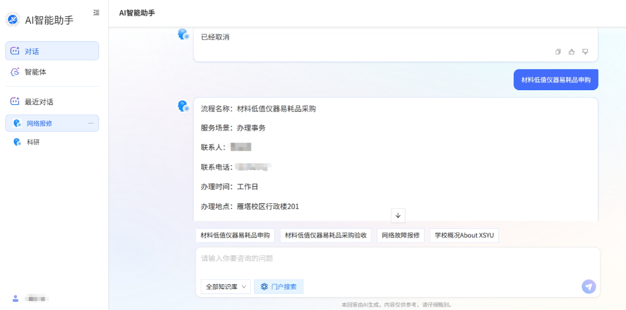 AI小油智能助手:24小時智慧服務(wù)新標配。融合服務(wù)門戶同步搭載AI小油智能問答系統(tǒng),聚焦獎助政策、辦事流程、校園網(wǎng)絡(luò)等高頻咨詢場景,提供7×24小時即時響應(yīng)服務(wù)。