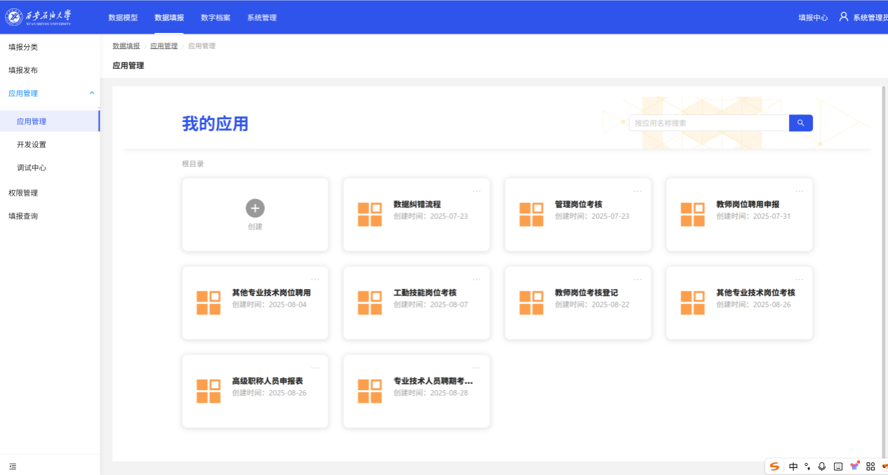 “填報中心”啟用:破解“重復填報”痛點,數(shù)據(jù)共享初見成效。針對師生反映強烈的“重復填報”問題,“填報中心”打造數(shù)據(jù)聚合平臺,以人事考核為突破口,聯(lián)動人事、教務(wù)、科研等部門,構(gòu)建教職工個人數(shù)據(jù)中心。系統(tǒng)已梳理12大類22張業(yè)務(wù)子表,完成年終考核、聘期考核、職稱評審等8張核心考核表單的數(shù)字化改造。目前,填報中心已成功對接人事系統(tǒng),支持自定義報表功能開發(fā),滿足各部門個性化數(shù)據(jù)采集需求。后期將隨著教務(wù)、科研等學校各類業(yè)務(wù)數(shù)據(jù)標準化落地,將全面實現(xiàn)“數(shù)據(jù)一次錄入、全域共享應(yīng)用”,進一步減輕師生填報負擔。