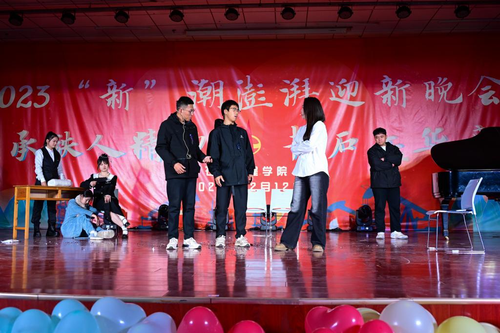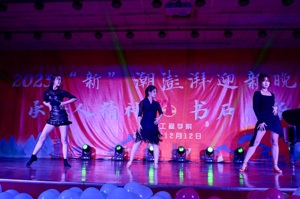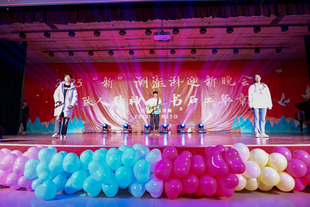 晚會以“承鐵人精神,書石工華章”為主題,分“頌青春夢想,譜時代新聲”“承鐵人意志,筑未來之夢”兩個篇章,共有14個精彩節(jié)目,還設有幸運抽獎及有獎問答環(huán)節(jié)。在第一篇章“頌青春夢想,譜時代新聲”中,節(jié)目形式多樣,內容豐富。有古聲古色的民樂演奏《蘭亭序》、銀色世界的獨舞《冬日》、異域風情的歌舞《有那么一個地方》;也有情思輾轉的吉他彈唱《老男孩》、詼諧幽默的舞臺劇《誰殺死了周日》、輕松愉快的特色節(jié)目《小人舞》引起了觀眾們陣陣掌聲。在第二篇章“承鐵人意志,筑未來之夢”中,有勇敢追夢的《玫瑰少年》、激情似火的《魅力拉丁》、奮發(fā)圖強、改變人生的《重生》、憧憬未來、渴望成長的《我相信 青春贊歌》以及團結友愛、協(xié)力前行的《愛的華爾茲》,這些節(jié)目讓觀眾們感受到了石工青年的堅韌不拔和自強不息精神。在幸運抽獎環(huán)節(jié)中,許多觀眾都獲得了精美的禮品,問答環(huán)節(jié)針對我校的校史校情、學科專業(yè)知識等對觀眾進行了考驗,同時也借此機會讓同學們更加深入地了解了石油行業(yè)相關企業(yè)的情況。最后,全體演職人員合唱的《奔跑》,將晚會推向高潮,2023“新”潮澎湃迎新晚會在激揚的歌聲中落下帷幕。