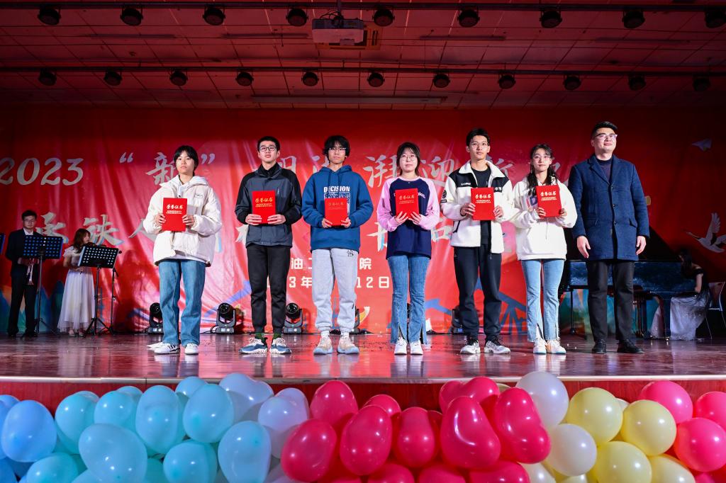 為了在全院學生中樹立典范,彰顯榜樣的力量,營造“追求卓越”“比學趕幫超”的良好氛圍,進一步激勵廣大同學奮發(fā)成才,本次晚會還特別設置了表彰頒獎環(huán)節(jié),對2022-2023學年獲得國家獎學金、中國石油獎學金的同學;在學科競賽獲國家級、省級獎項的團隊;在社會實踐活動中獲省級、校級獎勵的優(yōu)秀代表;第十五屆大學生陽光體育節(jié)中獲獎代表;2023年軍訓優(yōu)秀學員代表等50余名獲獎學生代表進行了隆重表彰,與會領導嘉賓為獲獎學生頒獎。