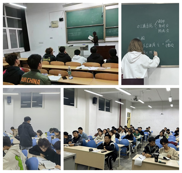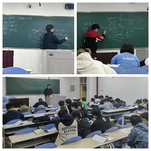 在晚自習環(huán)節(jié)中,能動2201班張瀠月同學從教材解析、方法指點和課外延展3個方面向同學們講授了高數(shù)的相關(guān)知識,并耐心解答了同學們的疑問。同時,她還分享了相關(guān)的網(wǎng)絡(luò)課程和學習資料,對同學們的學業(yè)規(guī)劃提出了寶貴的建議。能科2101班李新哲同學以普通化學課后習題和考試真題為切入點,引導同學們理解書本中的復雜概念并分享了自己的學習技巧。能材2102班鞏瑞翔同學針對高等數(shù)學中同學們共同關(guān)注的求導問題進行了重點講解,傳授同學們該如何靈活運用公式,歸納總結(jié)題目類型,同時講解相應(yīng)類型題應(yīng)如何尋找解題方法。能動2201班董代兵同學針對普通化學課程的重難點和考點內(nèi)容,采用授課講解和輔導答疑相結(jié)合的方式,帶領(lǐng)同學們分章節(jié)進行梳理,查缺補漏。幫扶過程中,各專業(yè)的課堂氛圍良好,內(nèi)容詳實,同學們?nèi)陶J真聆聽,將要點進行詳細記錄,并積極向?qū)W長學姐進行提問,不斷汲取知識,積累經(jīng)驗。