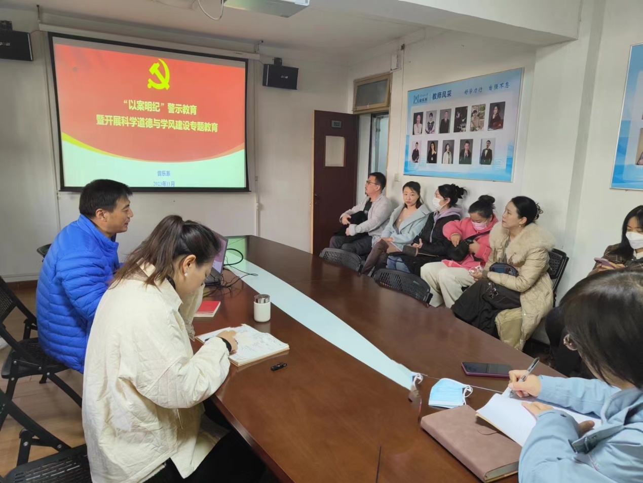 11月23日上午,音樂系在雁塔校區(qū)音樂樓會議室召開“以案明紀”警示教育和學術(shù)道德與科研誠信教育大會。音樂系黨政領導和全體教職工參加會議。會議由黨總支書記孟開元主持。