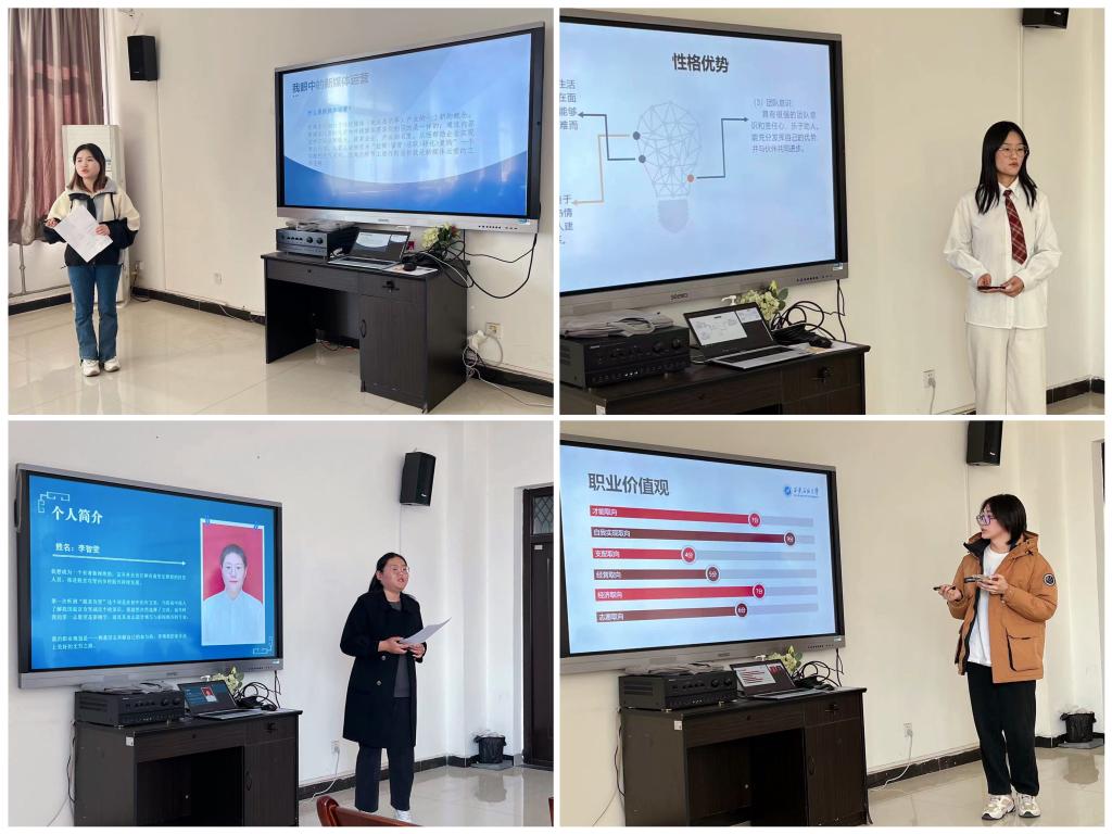 在答辯現(xiàn)場,13位選手通過PPT展示的方式,結(jié)合新媒體運營、品牌設(shè)計師、鄉(xiāng)村振興專員、室內(nèi)設(shè)計師、鄉(xiāng)村教師等崗位的實際情況,進行自我認識、職業(yè)分析、未來規(guī)劃、預期評估等方面的精彩闡述。評委根據(jù)現(xiàn)場表現(xiàn),對各位選手的職業(yè)生涯規(guī)劃完整性、邏輯性、PPT美觀性等方面進行全方位的點評和提問,對展示中出現(xiàn)的問題提出指正和建議。