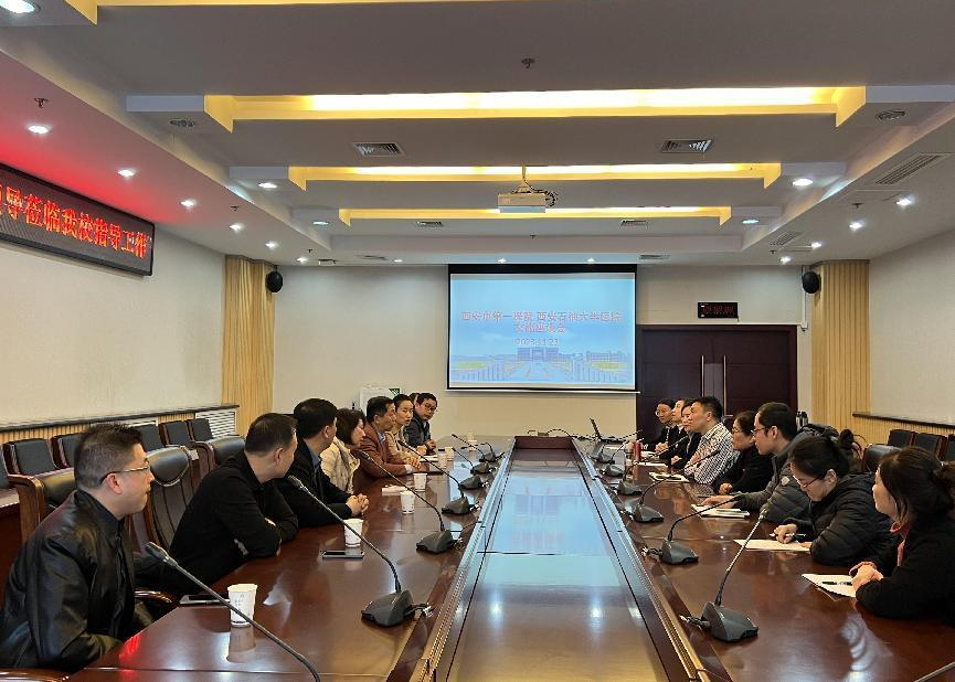 劉勝勇代表醫(yī)院對西安市第一醫(yī)院高新院區(qū)一行的來訪表示歡迎,并從兩校區(qū)醫(yī)院建設、公共衛(wèi)生、醫(yī)療服務能力、發(fā)展規(guī)劃等工作方面作了詳細的介紹并表示,西安石油大學醫(yī)院一直致力于積極提升服務師生基本醫(yī)療保障能力水平建設,希望通過深度合作,充分利用西安市第一醫(yī)院高新院區(qū)三級甲等優(yōu)質(zhì)醫(yī)療資源優(yōu)勢輻射效應,為我校醫(yī)院提供更多的業(yè)務指導和幫助,通過建立綠色通道、業(yè)務能力培訓、健康宣教等全方位多層次的交流合作,積極為我校師生提供更加便捷的就醫(yī)服務。
