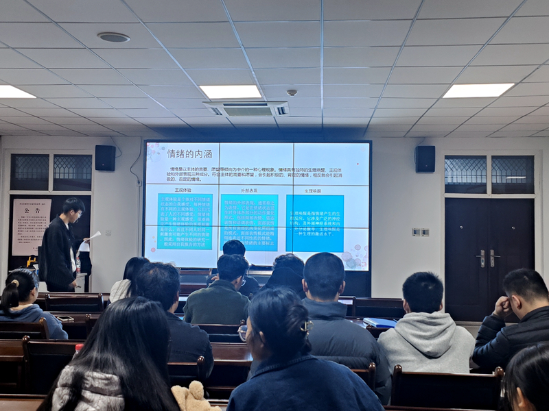 會議伊始,計類2206班邵文昊等幾位同學結(jié)合自己實際情況,從自我認知、情緒調(diào)節(jié)、自我提升三個部分展開班會內(nèi)容,通過心理健康知識問答、小組討論、以及學生案例分析等環(huán)節(jié),引導大學生重視心理健康教育,掌握心理健康相關知識。計類2209班吳佳杰等幾位同學通過介紹心理療愈的各種方式,幫助同學們緩解心理壓力和學業(yè)壓力,同時引入心理小游戲和趣味心理測試幫助學生心理健康成長,為其他心理委員開展心理自助和助人活動提供了思路和經(jīng)驗。最后,姚謙老師對參賽同學的匯報進行了點評,并分享了自己對于心理育人工作的認識和理解,幫助引導同學們更好地理解心理健康教育,增強班級心理委員做好心理健康教育工作的本領和能力。本次主題班會將遴選一名同學代表學院參加校級主題班會評選活動。