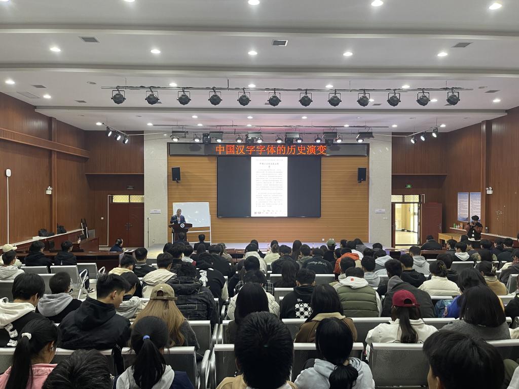 漢字是世界上現(xiàn)存最古老的文字,傳承漢字文化首先要對漢字的起源與發(fā)展進(jìn)行歷史追溯。從商朝的甲骨文,到周朝的金文,再到秦朝的小篆,漢代的隸書,魏晉的楷書,以及東漢的草書與行書,每個階段都蘊(yùn)含了深厚的歷史文化底蘊(yùn)。為了幫助同學(xué)們更加了解中華文明的發(fā)展歷程,增強(qiáng)文化自信和民族自豪感,同時培養(yǎng)審美能力和藝術(shù)鑒賞能力,人文學(xué)院于11月10日下午在鄠邑校區(qū)崇文樓就業(yè)指導(dǎo)中心多功能廳開展“人文大講堂之專家學(xué)者進(jìn)校園”系列講座——《中國漢字字體的歷史演變》及《中國大篆書法欣賞與實(shí)踐》。講座主講人分別為中國大篆文化研究院院長、竇體大篆書法家中國大篆文化傳承人竇德盛老師和文化學(xué)者、軍旅書法家,中國大篆文化研究院副院長,中國硬筆書法協(xié)會高級書法教師,“國禮藝術(shù)家”劉博老師。講座由人文學(xué)院黨委書記余小勇主持、各年級輔導(dǎo)員出席、人文學(xué)院與計(jì)算機(jī)學(xué)院學(xué)生參加。