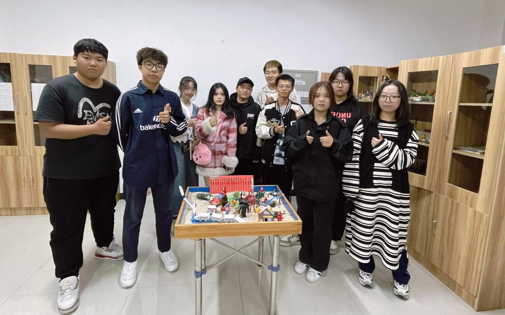 馬黎從沙盤療法的理論知識開展講解,詳細(xì)介紹了沙盤游戲的規(guī)則,指導(dǎo)同學(xué)們展開實(shí)踐。實(shí)踐分為兩個(gè)環(huán)節(jié):一是制作沙盤;二是討論與分享。在沙盤布置環(huán)節(jié),同學(xué)們井然有序,認(rèn)真選擇,積極構(gòu)思,逐步完成了團(tuán)隊(duì)的沙盤作品。隨后,每位同學(xué)對自己的擺放過程進(jìn)行了分享,訴說內(nèi)心的感受。通過團(tuán)體心理沙盤體驗(yàn),同學(xué)們獲得了心靈上的放松,也感受到被團(tuán)隊(duì)成員關(guān)注、支持的溫暖。最后,大家依次為沙盤作品命名,分享此次體驗(yàn)活動(dòng)的感受和收獲。