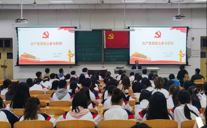 趙承勝以“共產黨員的義務與權利”為題,從“規(guī)定黨員義務和權利的意義”“黨員的義務”“黨員的權利”“義務和權利的辯證關系”四個方面展開授課,詳細講解了黨員“學習、實干、奉獻、守紀、組織、治黨、宗旨、道德”八個方面的義務及“政治、參政、議政、監(jiān)督、選舉、申辯、上訴、申訴”八個方面的權力,并結合黨章、黨規(guī)、黨紀和相關規(guī)定,以及自身多年的黨務工作經驗和豐富案例,解讀作為一名合格的黨員應該如何履行自己的義務和權利。他強調,作為一名入黨積極分子,要加強政治理論學習,用馬克思主義中國化的理論成果武裝頭腦,深刻把握習近平新時代中國特色社會主義思想的核心要義。要在日常學習生活中,嚴格對照黨員標準,充分發(fā)揮先鋒模范作用,吃苦在前,艱苦奮斗。要自覺遵守黨的紀律、法律法規(guī)、校規(guī)校紀,服從組織安排,積極完成各項任務。