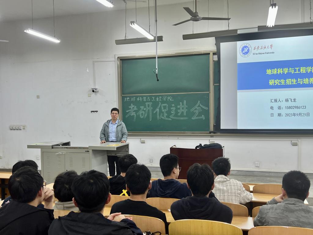會上,兩名在校優(yōu)秀研究生以自身經歷為例,為2020級學生生動具體的講解了考研事項。輔導員李佩琦老師匯總了本年級學生目前存在的問題,動之以情曉之以理的從多方面,積極引導考研學生,希望大家能夠以飽滿的姿態(tài)和堅持不懈的意志力迎接挑戰(zhàn)。最后,專業(yè)課老師楊飛龍介紹了本校研究生專業(yè)等情況,建議學生目標明確,一鼓作氣,堅持到底。