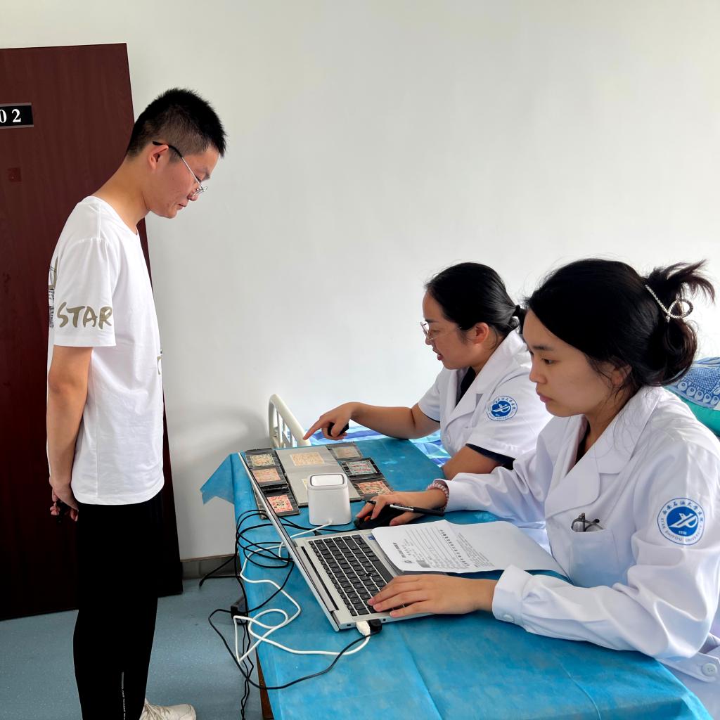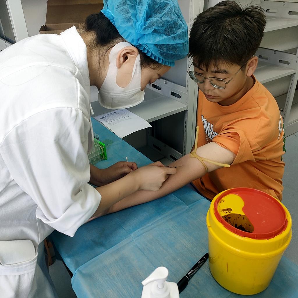 2023級新生體檢共設(shè)置了身高、體重、血壓、內(nèi)科、外科、視力、五官科、胸部X片、生化檢驗等九個工作小組。體檢現(xiàn)場,在醫(yī)務(wù)人員和學(xué)生志愿者的引導(dǎo)下,新生們按照院系和班級分批、錯峰有條不紊地進(jìn)行體檢,醫(yī)務(wù)人員對每個學(xué)生進(jìn)行了認(rèn)真細(xì)致的檢查,對體檢結(jié)果進(jìn)行詳細(xì)記錄,同時還針對性地給予學(xué)生相關(guān)保健建議和大學(xué)生醫(yī)保參保指導(dǎo)。