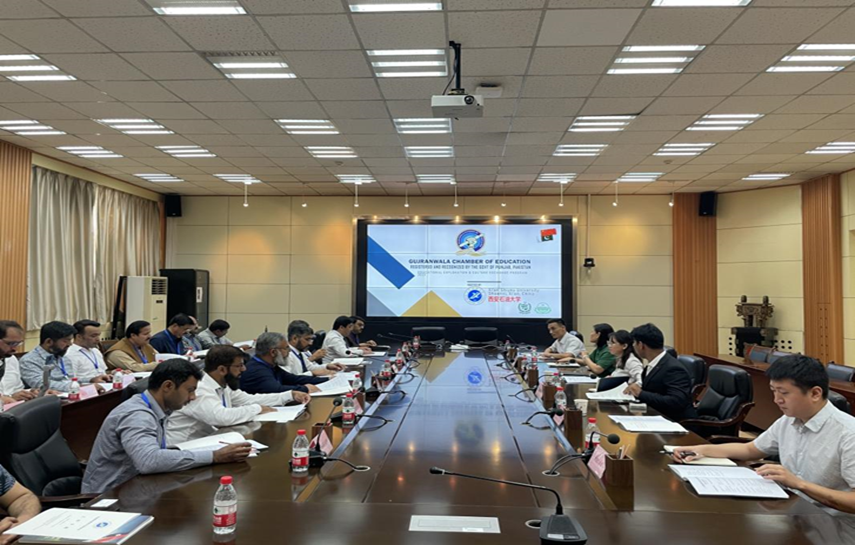 董皓對巴基斯坦教育代表團的到訪表示歡迎,并簡要介紹了西安石油大學的歷史沿革與現(xiàn)階段發(fā)展概況。國際教育學院(絲路能源學院)相關負責人匯報了我校人才培養(yǎng)、來華留學生教育等基本概況。