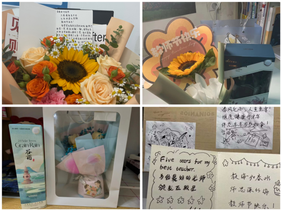 機械工程學院學子以實際的行動讓辛勤耕耘的老師體會到學生們的感恩之情,以真誠的行動表達對老師衷心的感謝及節(jié)日的祝福。學生們紛紛送上鮮艷的花朵,獻上手寫的賀卡,一聲聲祝福承載了他們對老師們深深的謝意,感謝老師們的諄諄教誨,感謝老師們的悉心指導。當學生代表把鮮花送到老師手里并送上“老師,教師節(jié)快樂!”的祝福時,任課教師臉上洋溢著幸福的笑容。