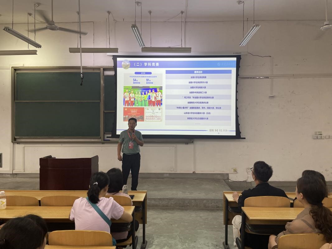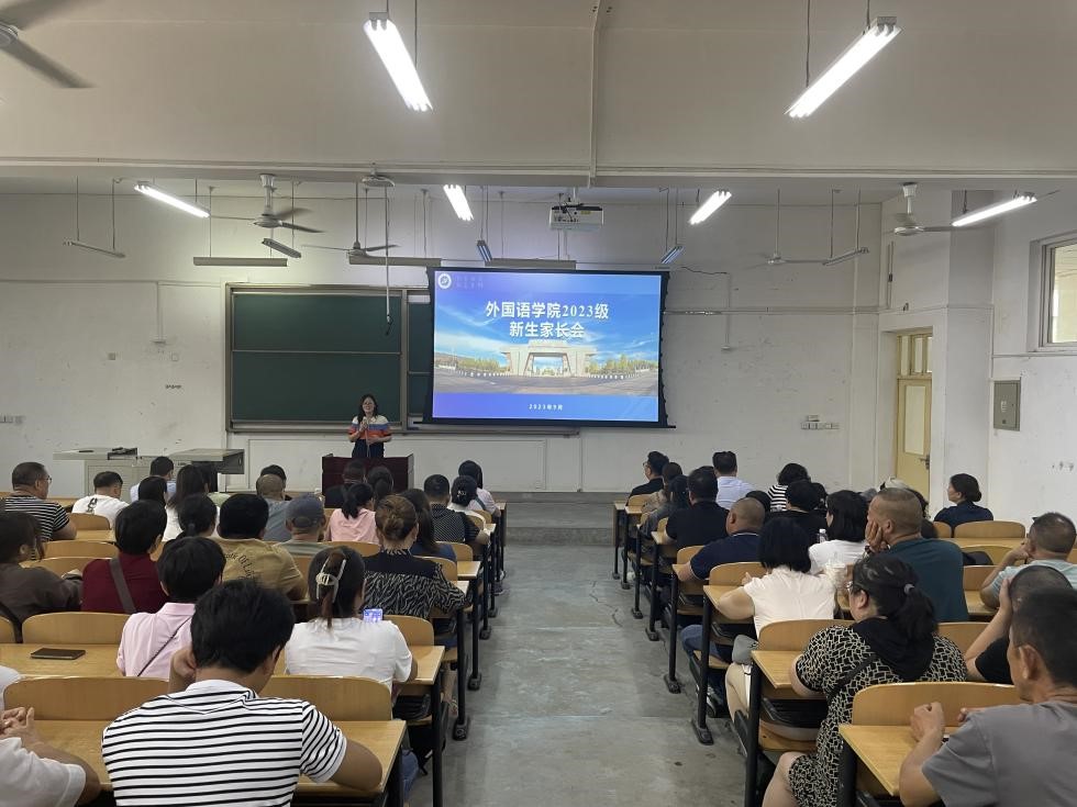 為加強家校聯(lián)動,提升育人實效,9月6日上午,外國語學院在鄠邑校區(qū)B區(qū)教學樓112教室召開2023級本科生新生家長見面會。學院黨委書記田虹霞、副書記王業(yè)青、副院長陳武及2023級本科新生家長參加會議。會議由2023級輔導員陶李主持。