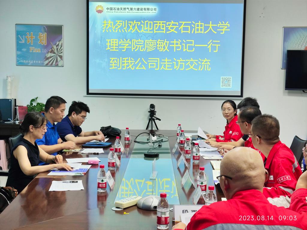 為進一步加強校企合作,開拓就業(yè)市場,2023年8月14日,理學院黨委書記廖敏、應用物理系副主任丁繼軍、人文學院畢業(yè)班輔導員李嶠等一行三人前往中國石油天然氣集團公司第六建設有限公司西北分公司(以下簡稱西北分公司)走訪交流。雙方就加強校企合作、關注校友成長等進行了座談交流。