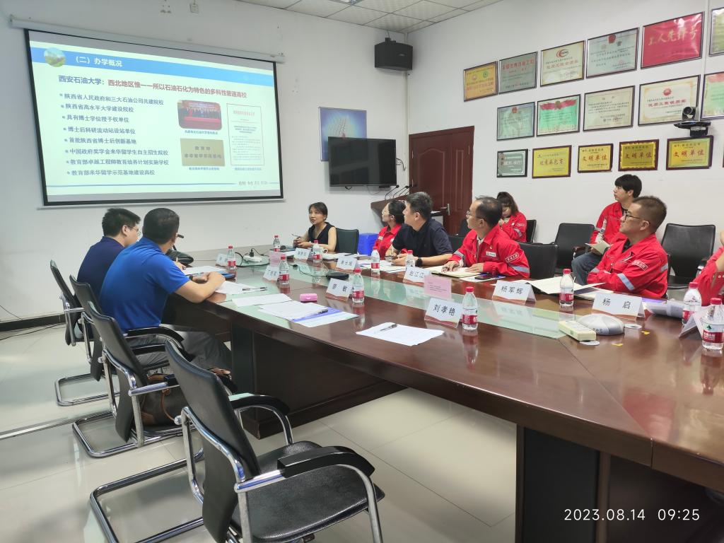 趙經(jīng)理對廖敏書記一行人的到來表示熱烈地歡迎,并從公司發(fā)展情況、人才培養(yǎng)模式、西安石油大學歷年畢業(yè)生發(fā)展情況、招聘需求及用工方式等方面進行了全方位的介紹。同時,趙經(jīng)理還表示作為西安石油大學的校友,希望能夠繼續(xù)加強合作交流,為校企進一步合作提供全方位的支持。
