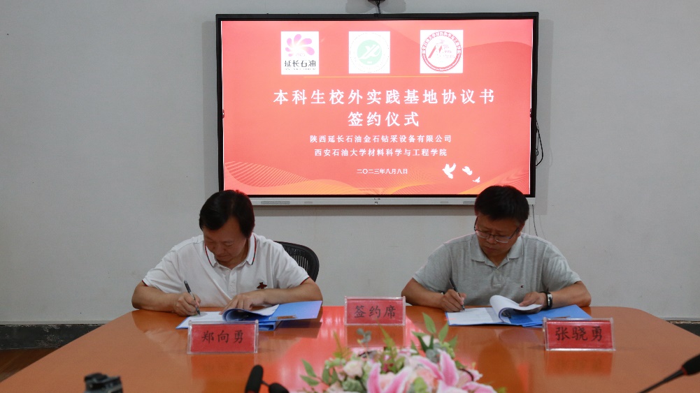 座談會(huì)上,西安石油大學(xué)材料科學(xué)與工程學(xué)院院長張驍勇與陜西延長石油金石鉆采設(shè)備有限公司鄭向勇總經(jīng)理作為代表簽署了本科生校外實(shí)踐基地協(xié)議和戰(zhàn)略合作協(xié)議。