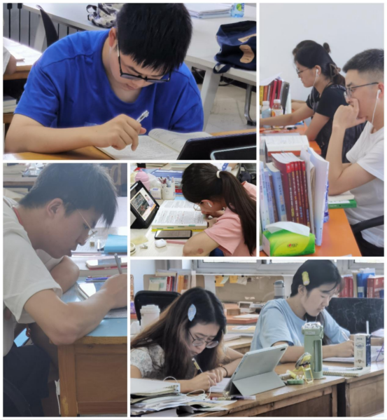 驕陽(yáng)似火的盛夏,崇文樓403考研自習(xí)室涼爽宜人,同學(xué)們熱情高漲,干勁十足。老師們走進(jìn)考研自習(xí)室,勉勵(lì)同學(xué)們一是要拿出勤學(xué)肯干的“鉆勁”,考研復(fù)習(xí)是一個(gè)需要積累的過程,不可能一蹴而就,學(xué)如弓弩方可才如箭鏃,當(dāng)前正處于學(xué)習(xí)的黃金時(shí)期,應(yīng)該把學(xué)習(xí)作為一種責(zé)任、一種精神、一種生活方式,讓勤奮學(xué)習(xí)成為青春遠(yuǎn)航的動(dòng)力,讓增長(zhǎng)本領(lǐng)成為青春搏擊的能量。二是要拿出開鎖解結(jié)的“巧勁”,考研復(fù)習(xí)是一場(chǎng)攻堅(jiān)戰(zhàn),“磨刀不誤砍柴工”,應(yīng)該堅(jiān)持科學(xué)規(guī)劃、勞逸結(jié)合,合理規(guī)劃好學(xué)習(xí)與休息時(shí)間,注重健康飲食,進(jìn)行適當(dāng)?shù)捏w育鍛煉,關(guān)注自我心理狀況,適時(shí)地調(diào)整狀態(tài),養(yǎng)成樂觀、理性、平和的心態(tài)。三是要拿出久久為功的韌勁,考研復(fù)習(xí)是一場(chǎng)持久戰(zhàn),需要長(zhǎng)期付出辛勞,不能心浮氣躁、淺嘗輒止,而應(yīng)循序漸進(jìn)、水滴石穿,更要慎終如始,“行百里者半九十”,只有以堅(jiān)強(qiáng)的意志做后盾,百折不撓、越戰(zhàn)越勇,才能在最后階段擁有戰(zhàn)勝困難的信心和艱苦奮斗的實(shí)力,從而取得最終勝利。