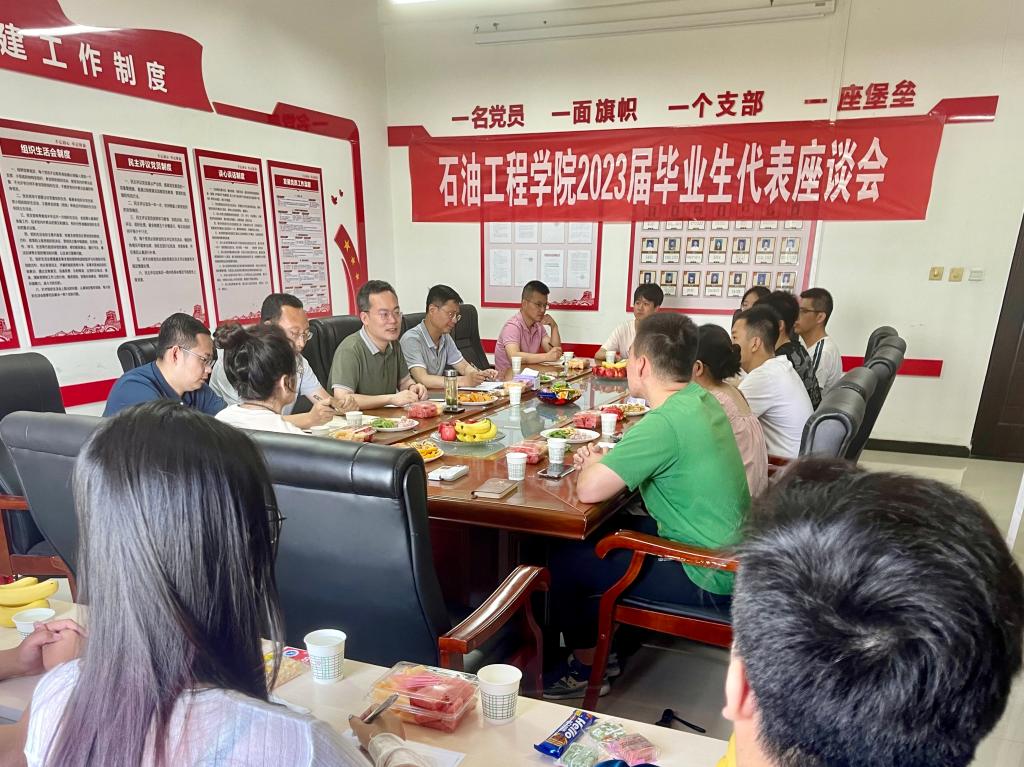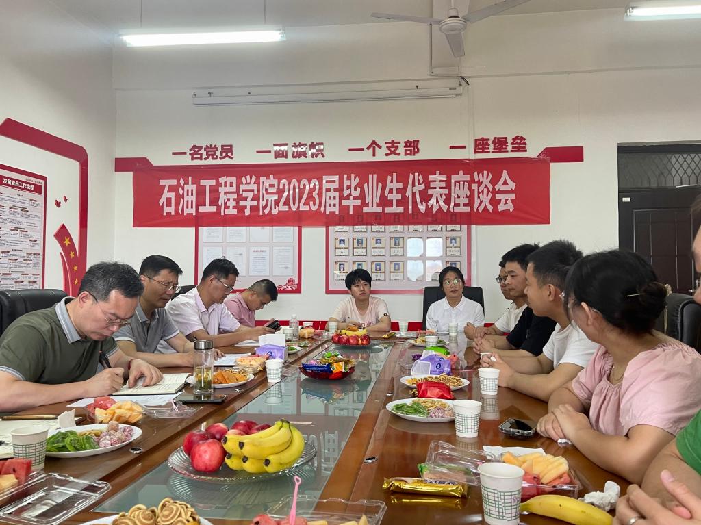 會上,畢業(yè)生代表積極發(fā)言,介紹了自己的畢業(yè)去向,表達了對母校的感恩,向辛勤付出的老師們表示感謝,同時暢談了在校期間的學習生活體會,通過四年親身體悟,就本科生教學安排、課堂教學效果、學生干部選拔培養(yǎng)、黨建工作、就業(yè)指導服務、本科生導師制度、班主任工作要求、學?;A設施建設、后勤服務、校友工作等方面提出眾多中肯的意見建議。參會老師認真聽取并記錄了畢業(yè)生代表們的建議,并對畢業(yè)生代表們提出了殷殷囑托,鼓勵他們在筑夢青春、建功立業(yè)中不斷增強志氣、骨氣、底氣,爭當艱苦奮斗、銳意創(chuàng)新的石油人,堅守為人誠實、基礎扎實、作風樸實、工作踏實、開拓創(chuàng)新的我校傳統(tǒng),在青春賽道上跑出自己的最好成績。