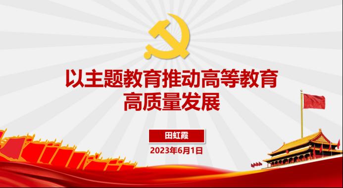 集中學(xué)習(xí)研討后,院黨委書(shū)記田虹霞做了題為“以主題教育推動(dòng)高等教育高質(zhì)量發(fā)展”的專(zhuān)題黨課。她從學(xué)習(xí)貫徹習(xí)近平新時(shí)代中國(guó)特色社會(huì)主義思想主題教育的意義與要求和高等教育事業(yè)高質(zhì)量發(fā)展兩個(gè)方面,闡明了主題教育的重大意義、目標(biāo)要求、全面落實(shí)重點(diǎn)舉措,并從將推動(dòng)高質(zhì)量發(fā)展作為檢驗(yàn)主題教育成果這一根本要求出發(fā),講述了新時(shí)代高等教育改革創(chuàng)新發(fā)展方向和路徑。黨課結(jié)合具體數(shù)據(jù)對(duì)比分析了世界高等教育發(fā)展趨勢(shì)和我國(guó)高等教育發(fā)展現(xiàn)狀,回顧了改革開(kāi)放特別是黨的十八大以來(lái)我國(guó)高等教育發(fā)展取得的成就,提出高等教育作為科技第一生產(chǎn)力、人才第一資源、創(chuàng)新第一動(dòng)力的重要結(jié)合點(diǎn),要在實(shí)現(xiàn)中國(guó)式現(xiàn)代化中發(fā)揮龍頭作用,要抓好根本質(zhì)量、整體質(zhì)量、服務(wù)質(zhì)量、打造中國(guó)范式,建成高等教育強(qiáng)國(guó)。