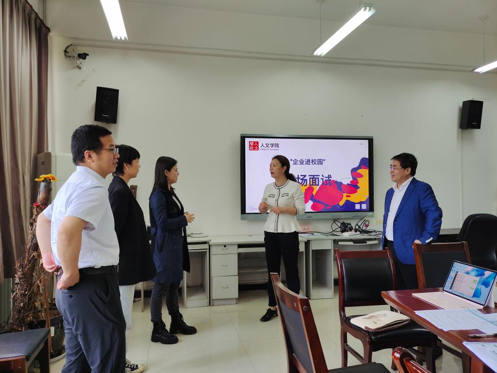 為進(jìn)一步拓寬就業(yè)渠道,挖掘就業(yè)崗位,促進(jìn)學(xué)生就業(yè),5月30日,陜西西咸新區(qū)人才集團有限公司侯冬穎一行4人應(yīng)邀來訪交流并開展專場面試。人文學(xué)院黨委書記余小勇、黨委副書記盛丹、人文學(xué)院全體輔導(dǎo)員參加交流。