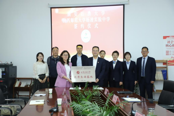 雙方表示,要以共建優(yōu)秀生源基地為契機(jī),加強(qiáng)交流合作、資源共享,努力培養(yǎng)更多具有扎實(shí)理論基礎(chǔ)和創(chuàng)新實(shí)踐能力的優(yōu)質(zhì)人才,共同推動(dòng)高校高中協(xié)同育人邁向新臺(tái)階。會(huì)上,田虹霞書記代表學(xué)校與陜西師范大學(xué)楊凌實(shí)驗(yàn)中學(xué)簽署了《西安石油大學(xué)優(yōu)秀生源基地建設(shè)協(xié)議》,并授予“優(yōu)秀生源基地”牌匾。