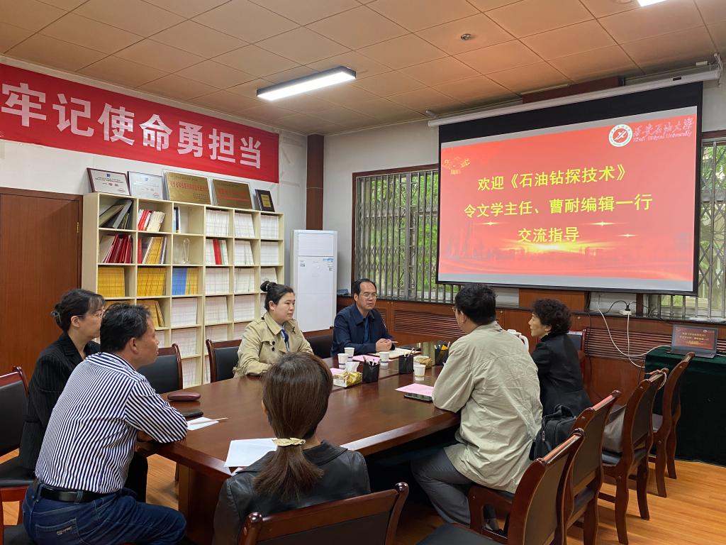 5月9日下午,《石油鉆探技術》編輯部令文學副主任、編輯曹耐博士一行兩人來訪交流。座談會在期刊中心會議室舉行。期刊中心負責人、《西安石油大學學報(自然科學版)》編輯部全體人員參加座談。