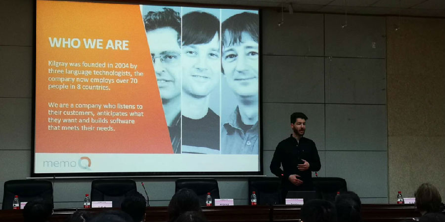 外國(guó)語(yǔ)學(xué)院院長(zhǎng)于艷英致開幕詞,對(duì)各位嘉賓的到來表示熱烈的歡迎。Kilgray公司聯(lián)合創(chuàng)始人,memoQ創(chuàng)意總監(jiān)Gabor Ugray和渠道總監(jiān)Tomas Ritter分別對(duì)memoQ的開發(fā)理念和服務(wù)器技術(shù)進(jìn)行了介紹,享譽(yù)全球的翻譯軟件培訓(xùn)師Angelika Zerfass就翻譯項(xiàng)目創(chuàng)建、術(shù)語(yǔ)管理和質(zhì)量控制等作了十分詳實(shí)的報(bào)告。上海一者信息科技劉寧赫經(jīng)理對(duì)基于memoQ, Trados 的Tmxmall語(yǔ)料對(duì)齊技術(shù)、在線翻譯、語(yǔ)料庫(kù)管理等進(jìn)行了圖文并茂的釋解,并耐心地對(duì)與會(huì)者提出的問題進(jìn)行了深入淺出的解答。