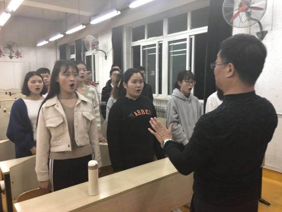 最后,在呂澄老師的鋼琴伴奏下,由周偉教授給合唱團(tuán)進(jìn)行第一次授課,并為每一位同學(xué)試音、分聲部,同學(xué)們?cè)谥軅ソ淌诘闹笇?dǎo)下,同學(xué)們熱情高漲,積極配合,圓滿完成了第一次合唱團(tuán)培訓(xùn)。