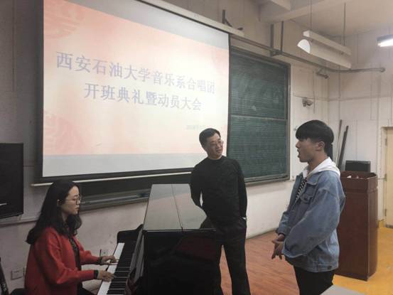 為加強(qiáng)音樂系學(xué)生各項(xiàng)基本技能,培養(yǎng)高質(zhì)量的“一專多能”型的群眾藝術(shù)工作者,經(jīng)過2個(gè)多月的籌備,成立音樂系合唱團(tuán)。3月26日晚,在雁塔校區(qū)二號(hào)教學(xué)樓1506音樂教室舉辦合唱團(tuán)開班暨動(dòng)員大會(huì)。特聘,西安電子科技大學(xué)公共藝術(shù)教育中心主任、陜西省合唱學(xué)會(huì)副會(huì)長(zhǎng)周偉教授為合唱團(tuán)指揮,音樂系主任程輝副教授、系黨總支副書記張偉出席本次大會(huì)。指導(dǎo)老師宋淼、鋼琴伴奏老師呂澄、學(xué)工辦全體老師及40名合唱團(tuán)成員參加本次大會(huì)。本次大會(huì)由張偉副書記主持。