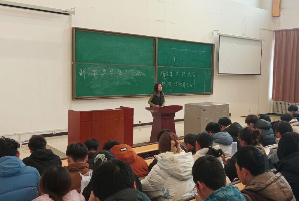 為進一步加強學院學風建設,營造良好育人氛圍,強化學生誠信意識和安全意識,近期,新能源學院各年級組織開展誠信考試教育暨節(jié)前安全穩(wěn)定會議,會議由學院各年級輔導員主持,全體學生參會。