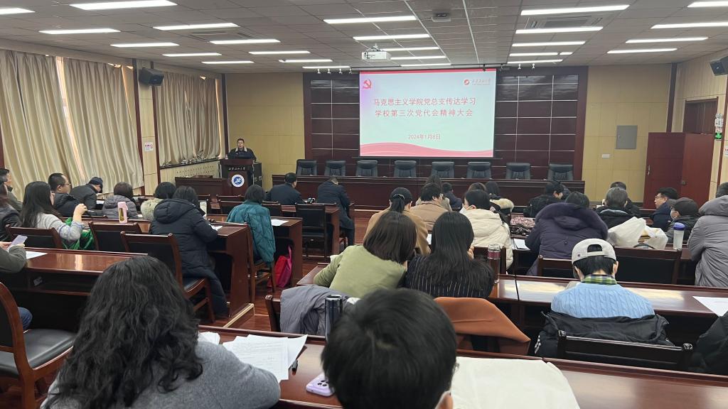 1月8日上午,馬克思主義學(xué)院黨總支在雁塔校區(qū)會議中心第五會議室召開傳達(dá)學(xué)習(xí)學(xué)校第三次黨代會精神大會。學(xué)院領(lǐng)導(dǎo)班子、全體教職工共50余人參加會議,會議由黨總支書記張偉主持。