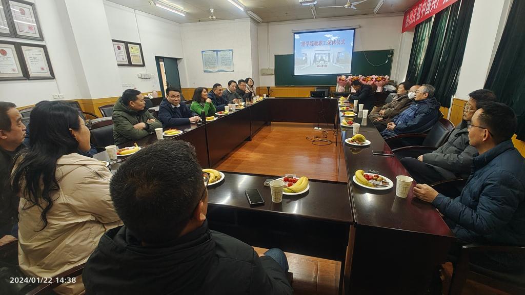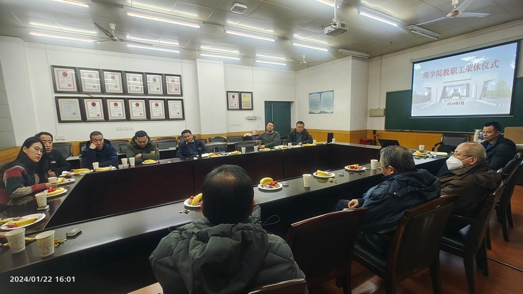 1月22日下午,理學(xué)院在雁塔校區(qū)東方石油樓209室隆重舉行2023年和2024年初教職工榮休儀式,為王可升、文杰、孫曉群、孫淑娥四位榮休教職工送上真摯的祝福、表達(dá)崇高的敬意。理學(xué)院領(lǐng)導(dǎo)班子全體成員、各教研室主任及教師代表近20人參加了儀式。儀式由理學(xué)院黨委書記廖敏主持。