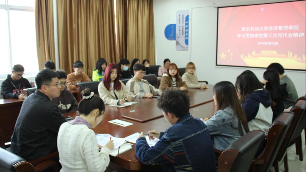 為進一步加強團學干部思想政治建設,提升理論水平,深入學習貫徹2024年全國兩會精神與學校第三次黨代會精神,經濟管理學院于3月13日下午在鄠邑校區(qū)崇文樓305會議室舉辦團學干部學習交流分享會。經濟管理學院團委書記李博文、團學指導老師任仰及主要團學工作干部參加本次活動。