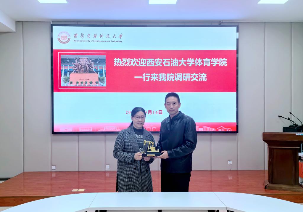 茍毅飛書記在發(fā)言中講到,非常感謝建大體院的熱情招待和傾囊相授,建大體院歷史悠久,底蘊深厚,傳承有序,許多做法都非常有特色,也非常值得我們學習和借鑒,希望兩院以后繼續(xù)加強深度交流合作,互通有無、互相支持、共同進步。誠摯邀請建大體院到西石大交流指導工作。最后李壽邦院長向由文華院長贈送了學校紀念品。