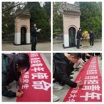 天地英雄氣,千秋尚凜然。全體師生代表來(lái)到偉大的愛國(guó)主義者、著名的教育家、政治活動(dòng)家杜斌丞烈士墓碑前,在校團(tuán)委李政老師主持下進(jìn)行了祭奠。大家回顧了杜斌丞先生為探索救國(guó)救民道路而走過(guò)的不平凡革命歷程,以及先生與我校的歷史淵源。同學(xué)們紛紛表示,前進(jìn)道路不可能一帆風(fēng)順,宏偉藍(lán)圖不可能一蹴而就。大家不僅要銘記烈士的遺志,弘揚(yáng)英烈的精神,更要踔厲奮發(fā)、勇毅前行,不斷為強(qiáng)國(guó)建設(shè)、民族復(fù)興偉業(yè)添磚加瓦、增光添彩,把革命先烈為之奮斗、為之犧牲的偉大事業(yè)奮力推向前進(jìn)。隨后,全體師生代表在橫幅上鄭重地簽上了自己的名字。
