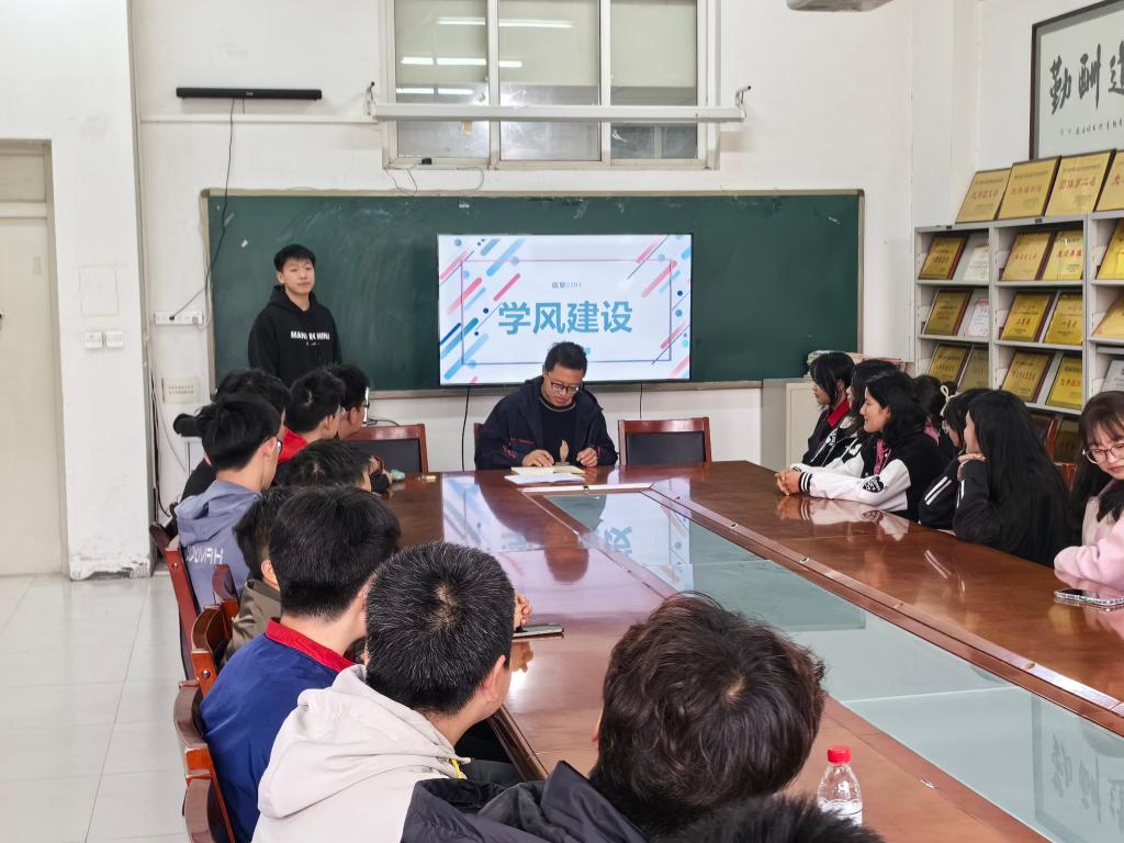 學院2023級輔導員李猛分別組織召開了2023級8個班次的主題班會。李老師結(jié)合各班級上學期期末考試成績進行情況分析。他總結(jié)了上學期同學們在大學生活中的表現(xiàn),鼓勵同學們在保證學業(yè)優(yōu)秀的同時積極參與課外活動,發(fā)掘自己的興趣愛好。同時,李老師針對“污點學分”較多的同學進行學業(yè)警示,通過家校聯(lián)合,朋輩互助,學科專項學習小組等方法,提高同學們學習積極性和自身學習能力。