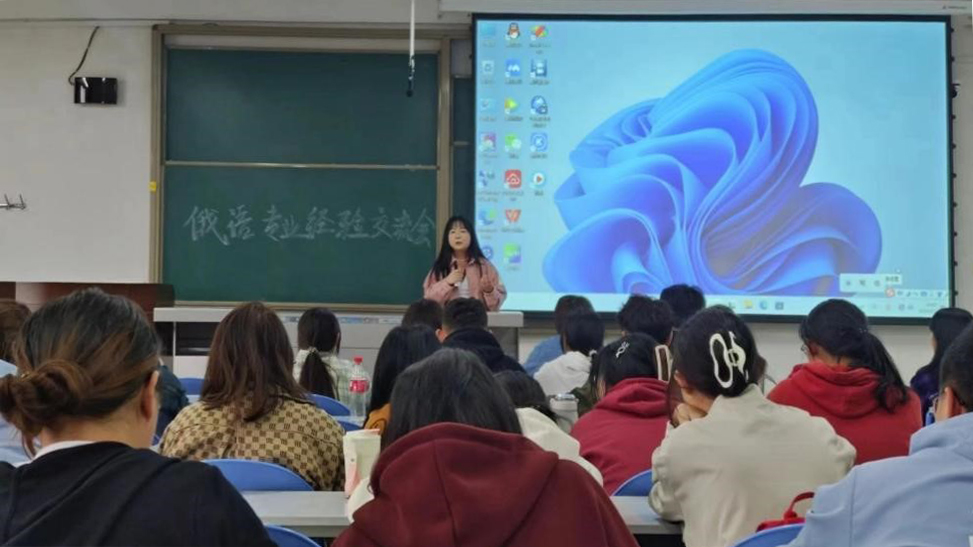 為落實學院關于推進畢業(yè)生就業(yè)工作的安排,加強俄語專業(yè)學生對升學和就業(yè)形式的了解,幫助學生做好學業(yè)及職業(yè)規(guī)劃。4月2日,俄語專業(yè)在鄠邑校區(qū)A302教室舉辦就業(yè)考研經驗分享交流會,俄語專業(yè)優(yōu)秀在校生楊奕聰、孫芳茹、張靜葉、薛思琪以及優(yōu)秀畢業(yè)生郭麗瑋應邀分享經驗。會議由俄語系系主任張艷主持。俄語專業(yè)教師李娜、賈永寧、孫婷、郭靜遠及近200名本科生參加會議。