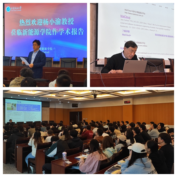 在全院上下深入貫徹落實(shí)我校第三次黨代會精神,全面推動一校一策工作之際,41日下午,新能源學(xué)院新程大講堂第5講在邑校區(qū)弘石報告廳舉行,中國科學(xué)院計算機(jī)網(wǎng)絡(luò)信息中心楊小渝教授應(yīng)邀作了題為“MatCloud材料智算云:國產(chǎn)新材料研發(fā)加速度’”的學(xué)術(shù)報告。本次報告由學(xué)院黨委書記宋海洋主持,學(xué)院師生代表共計100余人參加此次報告會。