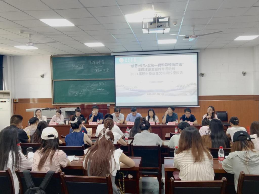 經(jīng)濟(jì)管理學(xué)院召開(kāi)“感恩·傳承·啟航—我和導(dǎo)師面對(duì)面”學(xué)風(fēng)建設(shè)主題教育活動(dòng)暨2024屆碩士畢業(yè)生文明離校座談會(huì)