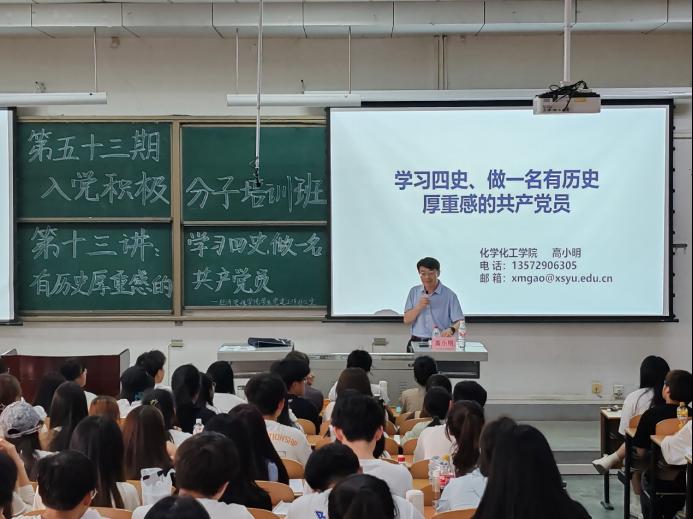 為加強黨史、國史、改革開放史、社會主義發(fā)展史教育,弘揚以愛國主義為核心的民族精神和以改革創(chuàng)新為核心的時代精神,5月22日,經(jīng)濟管理學院第五十三期入黨積極分子培訓班第十三講于鄠邑校區(qū)博覽樓239教室舉行。本次黨課由化學化工學院黨委書記高小明主講,第五十三期全體入黨積極分子參加。