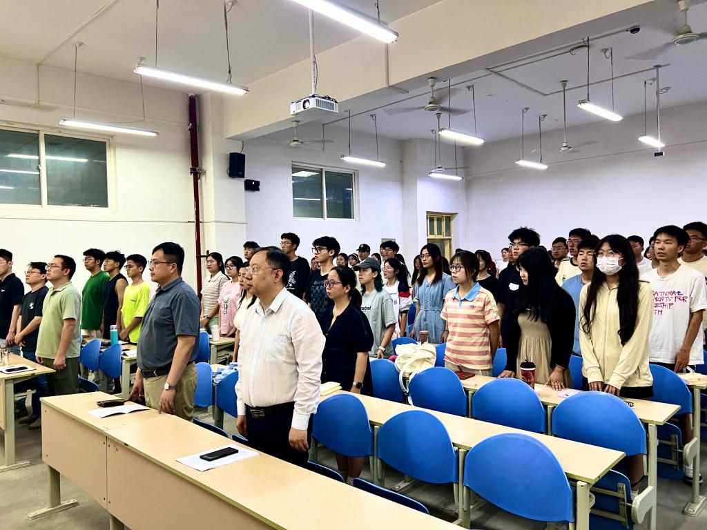 活動伊始,全體起立,在國歌聲中開班儀式拉開序幕。周鈺桐介紹了本次黨課培訓(xùn)班基本情況,并宣讀培訓(xùn)紀(jì)律條例。入黨積極分子楊玉璽同學(xué)代表全體參訓(xùn)學(xué)生發(fā)言,承諾將嚴(yán)格遵守培訓(xùn)班紀(jì)律,認(rèn)真學(xué)習(xí)黨章黨史,努力踐行黨員標(biāo)準(zhǔn),爭取早日加入中國共產(chǎn)黨。