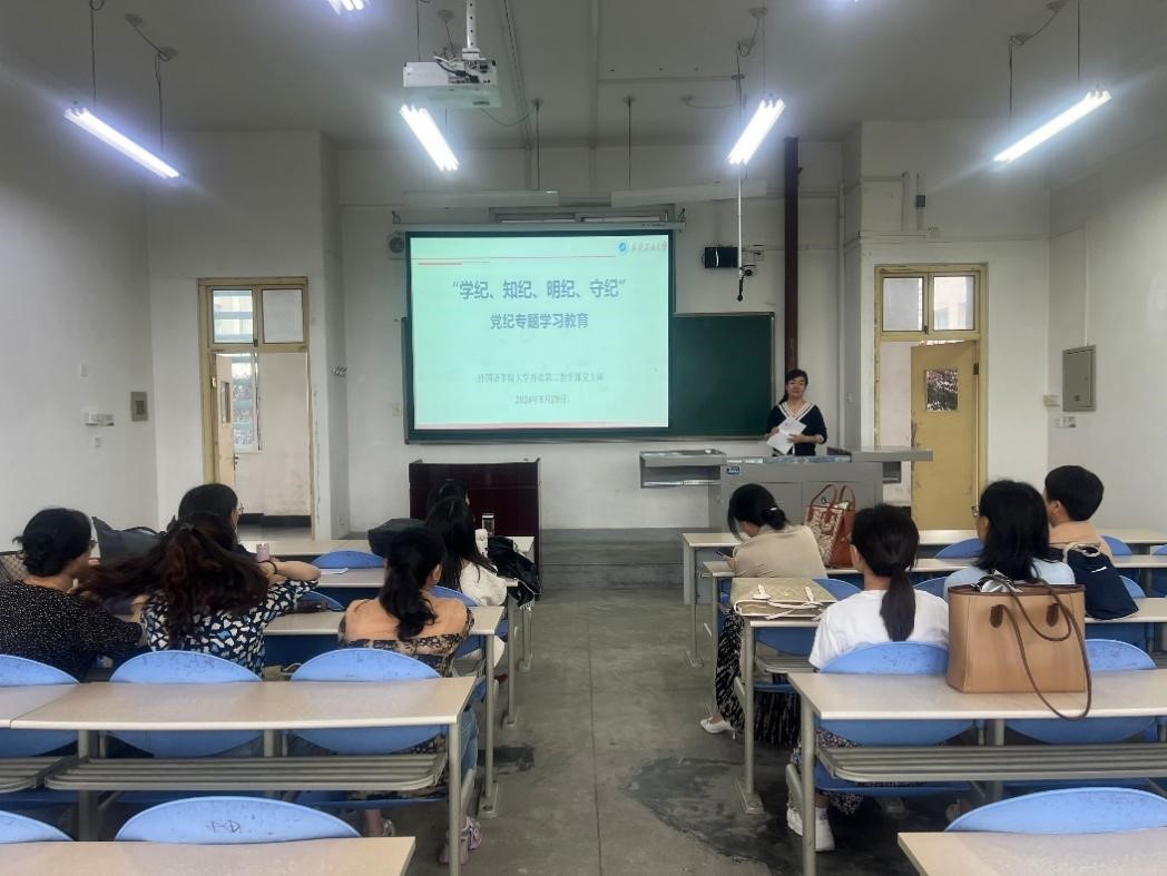 5月29日上午,外國(guó)語(yǔ)學(xué)院大學(xué)外語(yǔ)第二教學(xué)部黨支部在鄠邑校區(qū)A247召開(kāi)“學(xué)紀(jì)、知紀(jì)、明紀(jì)、守紀(jì)”黨紀(jì)學(xué)習(xí)教育專題會(huì)議。會(huì)議由黨支部書(shū)記李紅主持,大學(xué)外語(yǔ)第二教學(xué)部黨支部全體黨員參加會(huì)議。