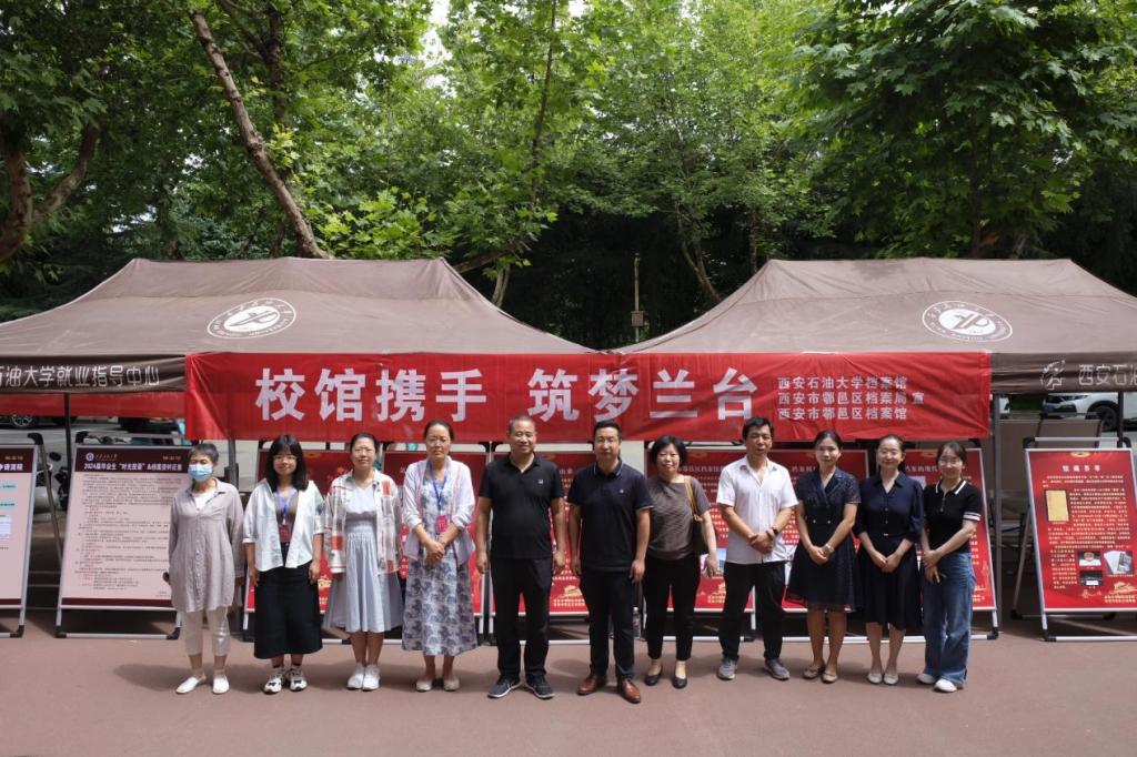 會后,鄠邑區(qū)檔案館館長葛紅衛(wèi)一行參觀了校史館。參觀結(jié)束后,雙方聯(lián)合開展了“校館攜手,筑夢蘭臺‘6·9’國際檔案日主題宣傳”活動,重點對《檔案法實施條例》、畢業(yè)生檔案辦理流程和檔案征集活動進行了宣傳。活動在鄠邑校區(qū)B區(qū)食堂門前舉行。