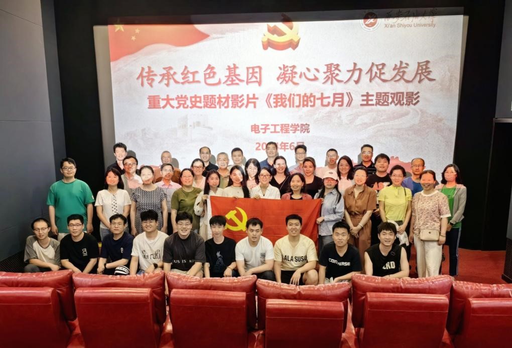 為鞏固拓展學習貫徹習近平新時代中國特色社會主義思想主題教育成果,推動黨史學習教育工作常態(tài)化、長效化,6月7日下午,電子工程學院黨委開展了“傳承紅色基因 凝心聚力促發(fā)展”主題黨日觀影活動,組織學院師生黨員代表集體觀看了重大黨史題材影片《我們的七月》。