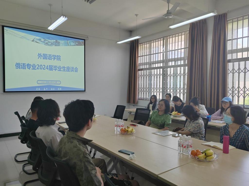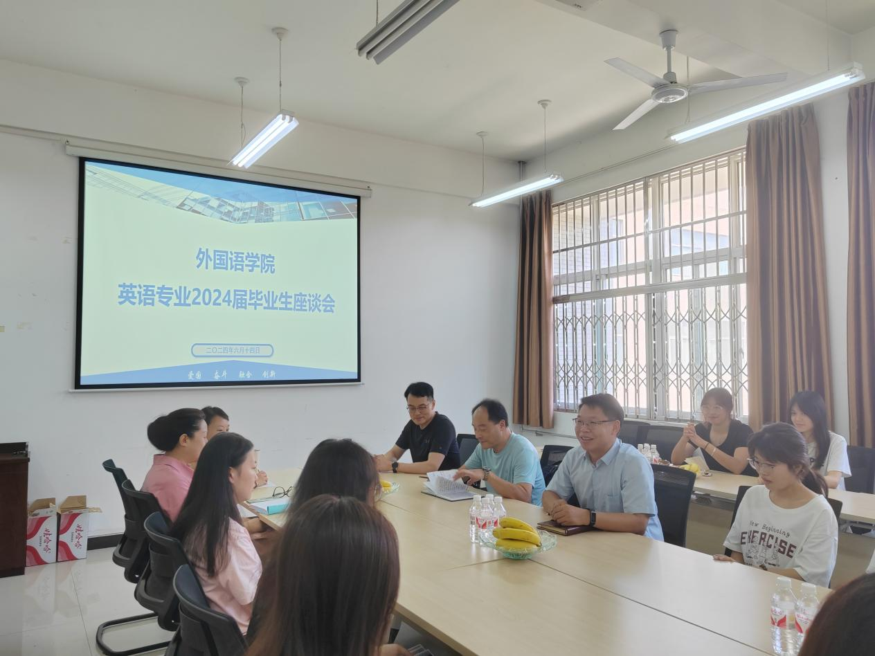 為進一步促進學院發(fā)展,提高學院人才培養(yǎng)質量,根據(jù)2024屆畢業(yè)生“畢業(yè)季”相關活動的安排,外國語學院于6月12日-14日在崇文樓314分專業(yè)召開畢業(yè)生代表座談會。學院黨委副書記王業(yè)青,副院長陳武,英語系主任鐘澤波,俄語系主任張艷,翻譯系主任秦艷霞,各系部教師代表、畢業(yè)班輔導員及各專業(yè)畢業(yè)生代表參加座談會。